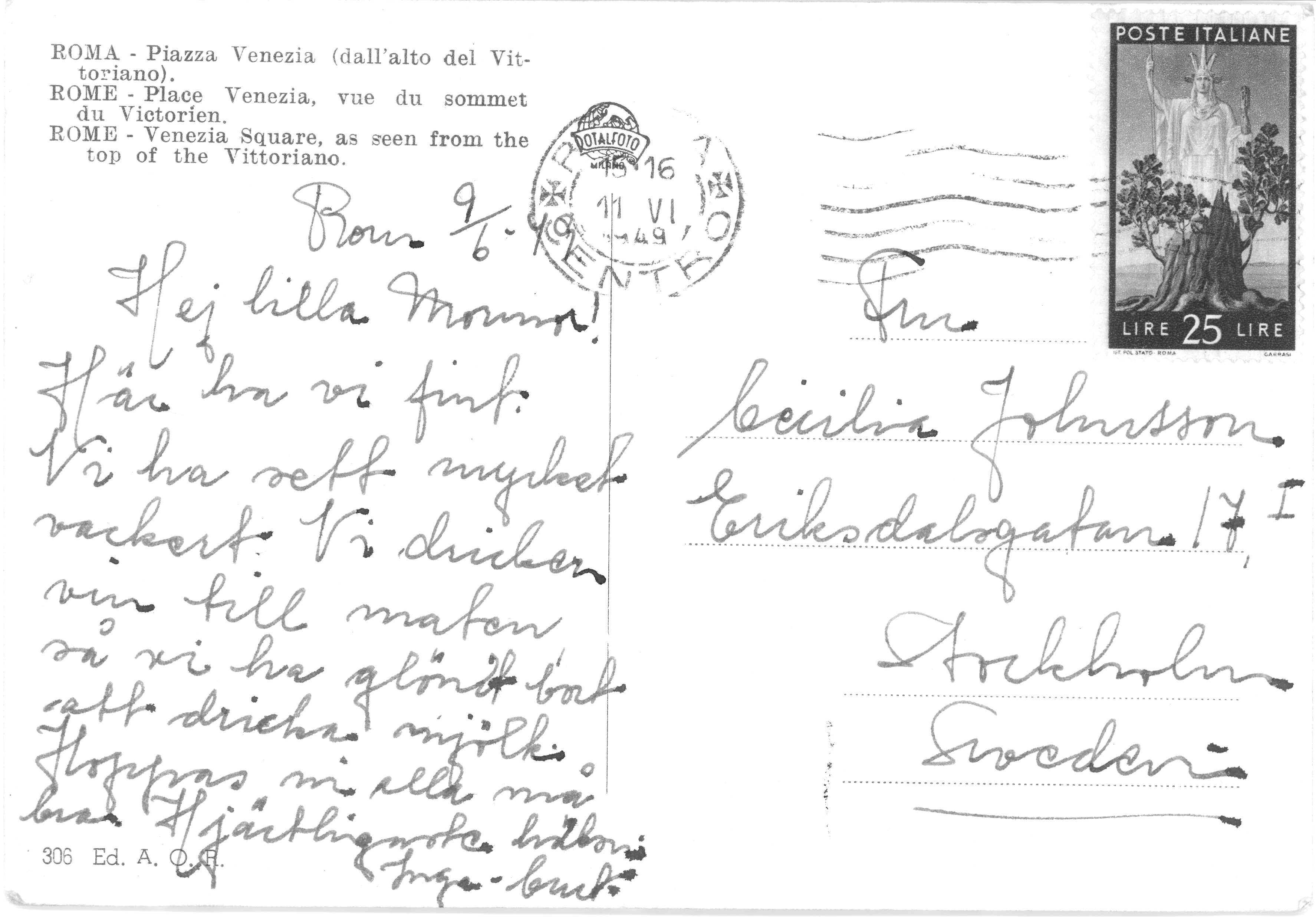 Post cards from Italy to Cecilia from her granddaughter Inga.