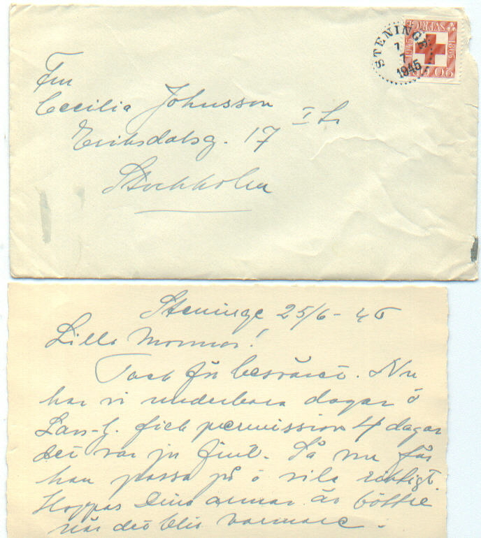 Granddaughter Inez and great grandson Lars-Gustaf write Cecilia a card from Steninge outside Halmstad and Sweden's oldest town Sigtuna.